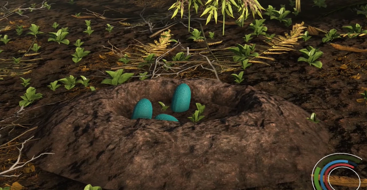 Rendition of a dinosaur nest in-game.